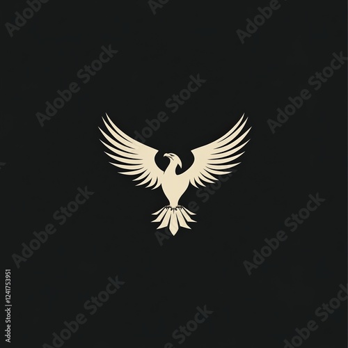 © Natalia, Obraz premium A minimalist logo featuring a stylized light-colored eagle silhouette with outstretched wings and sharp geometric details against a dark background