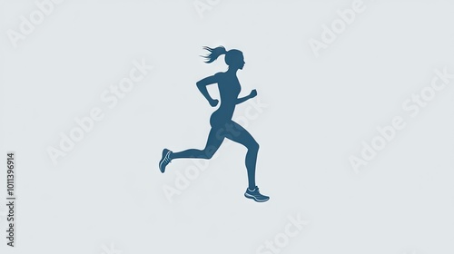 Fototapeta premium A minimalist logo showcasing a woman running, designed in elegant slate blue,...