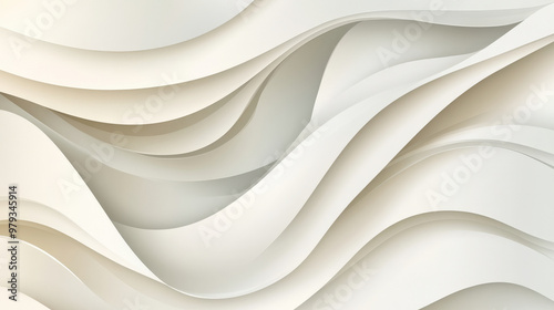 © wolfhound911, Obraz premium A minimalist paper cut background with flowing, wavy layers in soft white, cream, and light grey, creating a subtle, elegant design.