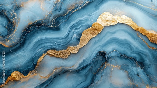 © tunanon, Fototapeta premium A minimalist pastel blue marble background with thin golden veins flowing smoothly, radiating calmness and refinement