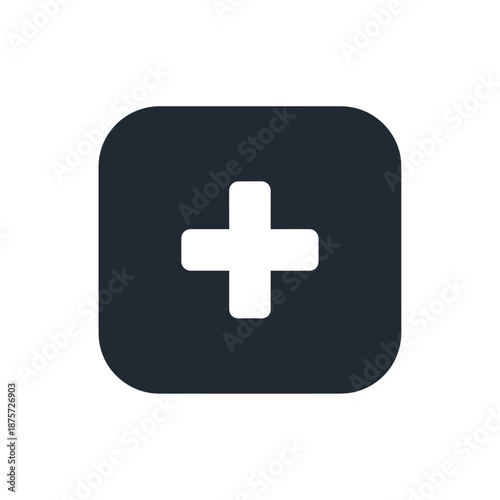© Logo, Obraz premium A minimalist plus icon on a dark gray rounded square background
