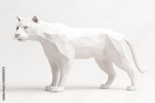© enterdigital, Obraz premium A minimalist polygonal sculpture of a white animal representing modern design.