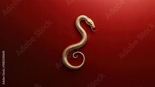Fototapeta premium A minimalist red background with a subtle golden snake motif, evoking the...