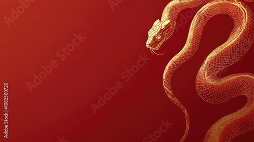 Obraz premium A minimalist red background with a subtle golden snake motif, evoking the elegance and symbolism of the 2025 Year of the Snake