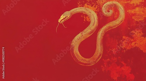 Fototapeta premium A minimalist red background with a subtle golden snake motif, evoking the...