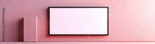 Fototapeta premium A minimalist room featuring a blank white canvas on a pastel pink wall,...