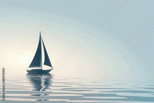 Obraz premium A minimalist silhouette of a sailboat on a calm ocean with a soft, sunset...