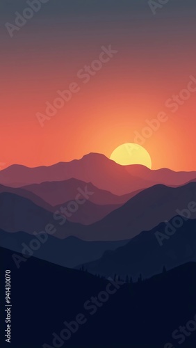 Fototapeta premium A minimalist silhouette of mountains at sunset, with a gradient sky transitioning from day to night