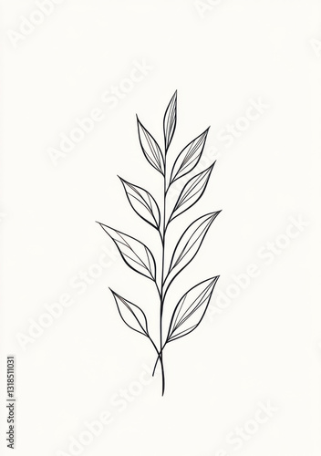 © Lovely Studio , Fototapeta premium A minimalist single-line drawing of an evergreen leaf, simple and elegant, set against a white background for easy engraving.