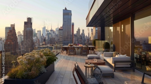 Obraz premium A minimalist-style rooftop terrace with sleek outdoor furniture, minimalist...