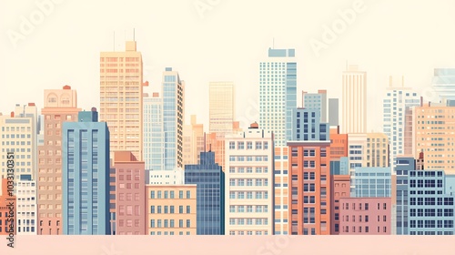 Obraz premium A minimalist urban illustration featuring simplified buildings and soft...