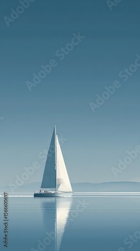 © Sky Layer, Fototapeta premium A minimalist vector art of a single sailboat in a calm sea