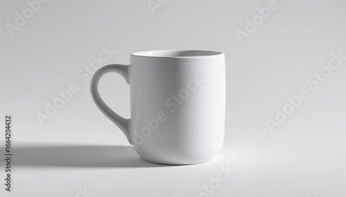 © Reandz, Fototapeta premium A minimalist white ceramic mug with a soft shadow and left copy space