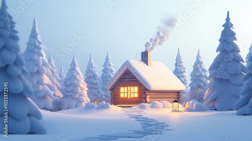 © Sergey, Naklejka premium A minimalistic and cozy winter resort scene