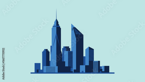 Fototapeta premium A minimalistic business vector illustration featuring a modern office building skyline with sharp geometric shapes.