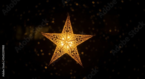 © Leo, Fototapeta premium A minimalistic composition featuring a single, perfect, white amaryllis flower in a glass vase next to a small gold gift, with a large, soft, circular bokeh effect behind it.