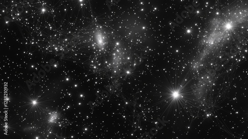 © Julia, Fototapeta premium A minimalistic dark background featuring abstract designs of geometry, astronomy, stars, and cosmic particles.