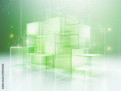 © Llama-World-studio, Obraz premium A minimalistic green cube image. AI Generation.