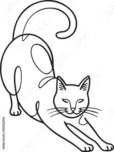 Naklejka premium A minimalistic line art illustration of a cat stretching.