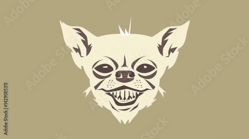 © Waa, Obraz premium a minimalistic logo of a white short hair old chihuahua dog with a minor long closed mouth with ridicule evil grin