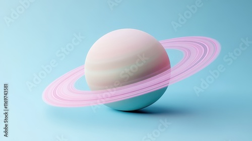 Obraz premium A minimalistic model of Saturn featuring soft pink rings against a light blue...