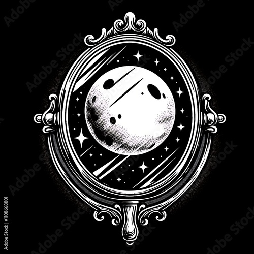Fototapeta premium A mirror reflecting a moon in a starry space.