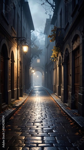 Obraz premium A misty alleyway at night