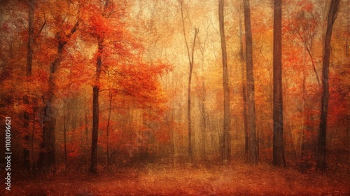 Obraz premium A Misty Autumn Forest with Vivid Red and Orange Foliage
