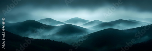 Fototapeta premium A Misty Landscape with Rolling Hills and a Serene Atmosphere