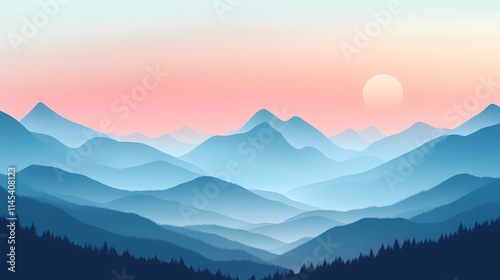 Obraz premium A misty veil shrouding the peaks and valleys at dawn, valley, atmospheric effect. Veil. Illustration