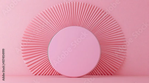 © -Quantum Pixels-, Obraz premium A mock pink circle designed for showcasing a product sample set against a pastel pink fan shaped background in 3D rendering