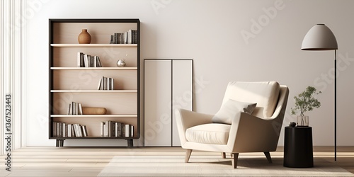 © Kashaf, Fototapeta premium A mockup of an empty black frame on the wall in a contemporary living room, featuring a light-colored