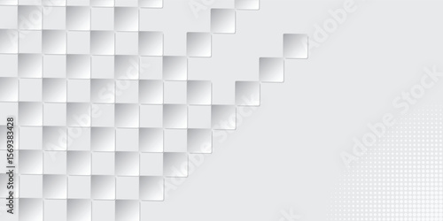 © yousuf757, Obraz premium A modern abstract background featuring a gradient of light gray to white, adorned with a geometric pattern of raised squares on the left and a subtle halftone dot gradient on the right.