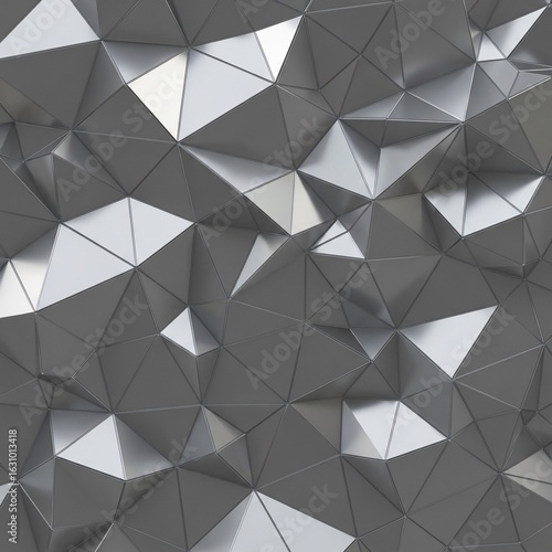 Obraz premium A modern, abstract background featuring a low-poly, metallic, triangular...