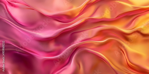 Fototapeta premium A modern abstract background with 3D wave gradients of silk fabric in vibrant pink and gold. The flowing fabric adds a dynamic, energetic quality to the scene.