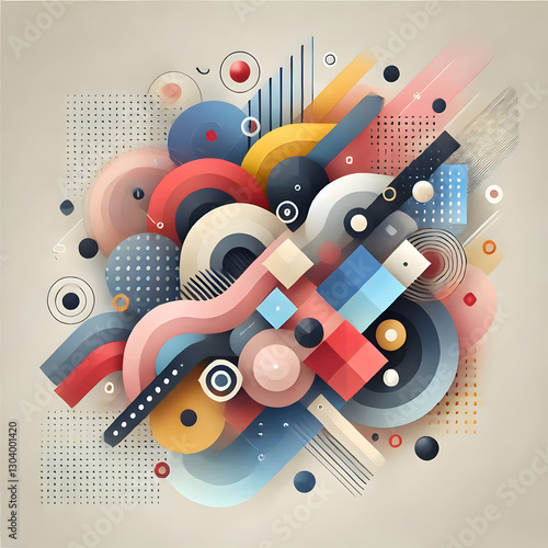 © Ginna, Obraz premium A modern abstract design with colorful geometric patterns and smooth textures, ideal for use in digital design or as a trendy wallpaper backdrop.