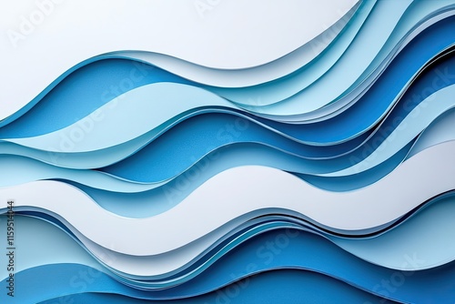 Fototapeta premium A modern abstract paper - cut wave design in blue and white hues
