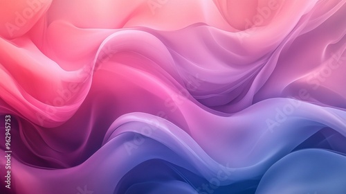© Rapit, Obraz premium A modern abstract scene of rippling layers in pastel pink, blue, and purple, with soft lighting and gradients