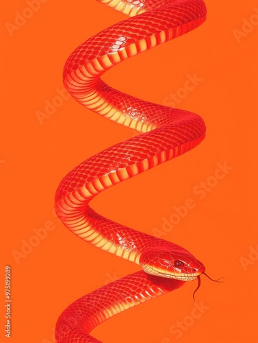 Fototapeta premium A modern and sleek digital illustration of a snake coiled in a double helix symbolizing energy and life force with a gradient of fiery red and orange shades with metallic copper accents