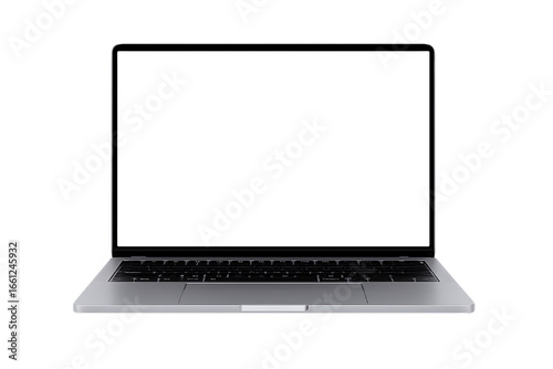 © aigiants, Fototapeta premium a modern and sleek silver laptop with a blank white screen is ready for your text or design on a digital platform isolated on a transparent background