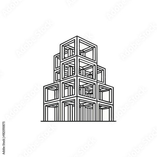 © aan, Fototapeta premium A modern architectural design featuring a geometric structure of interconnected square frames, creating a unique building outline.