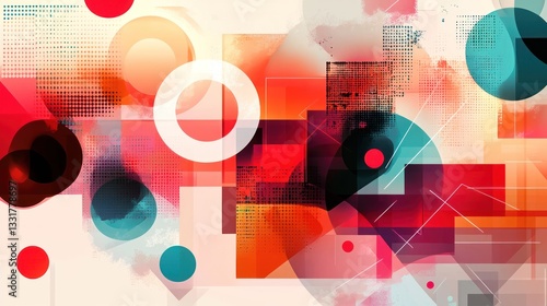 Obraz premium 3. "A modern art design featuring overlapping circles, squares, and sharp angles