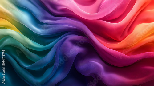 Obraz premium A modern art piece featuring cascading fabric dyed in gradient tones of the rainbow.