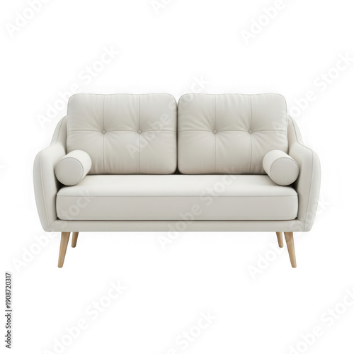 Obraz premium A modern beige sofa with wooden legs in a minimalist living room setting.