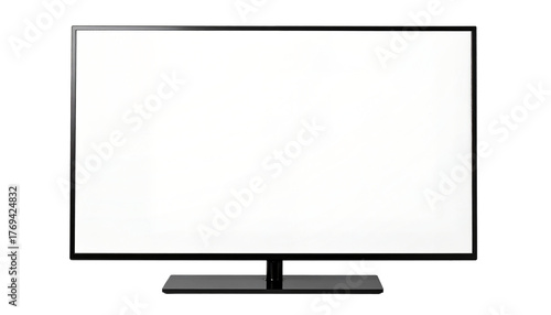 Naklejka premium A modern black computer monitor or TV screen with a blank white display and a...