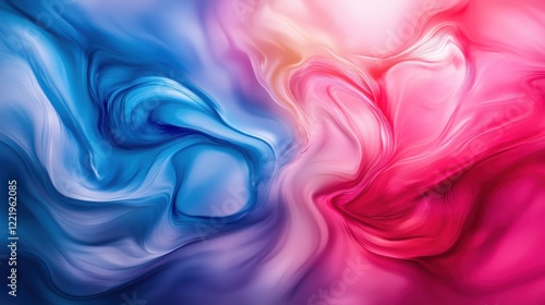 © EmmaStock, Obraz premium A modern blue and pink holographic gradient with flowing metallic textures