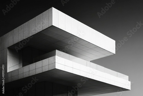 © Outkast, Fototapeta premium A Modern Building's Architectural Detail with a Concrete Overhang and a Balcony