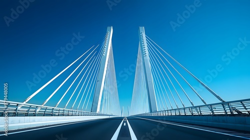 Fototapeta premium A modern cable-stayed bridge under a bright blue sky, characterized by white...