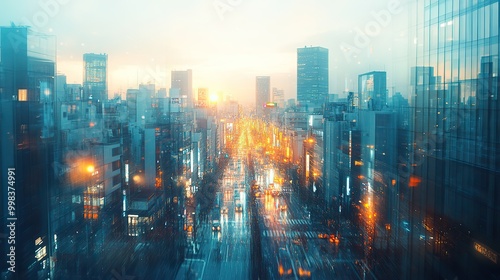 Fototapeta premium A modern city background serves as a visual for global business technology concepts.