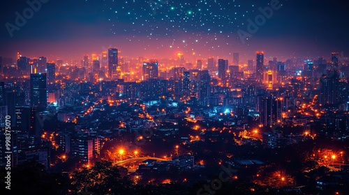 © Ta, Fototapeta premium A modern city showing the concept of wireless network connectivity.